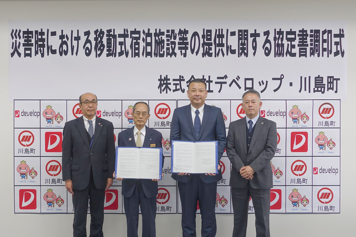 デベロップは、災害発生時における「レスキューホテル」の出動に関し、2020年11月20日に埼玉県川島町と協定を締結しました。