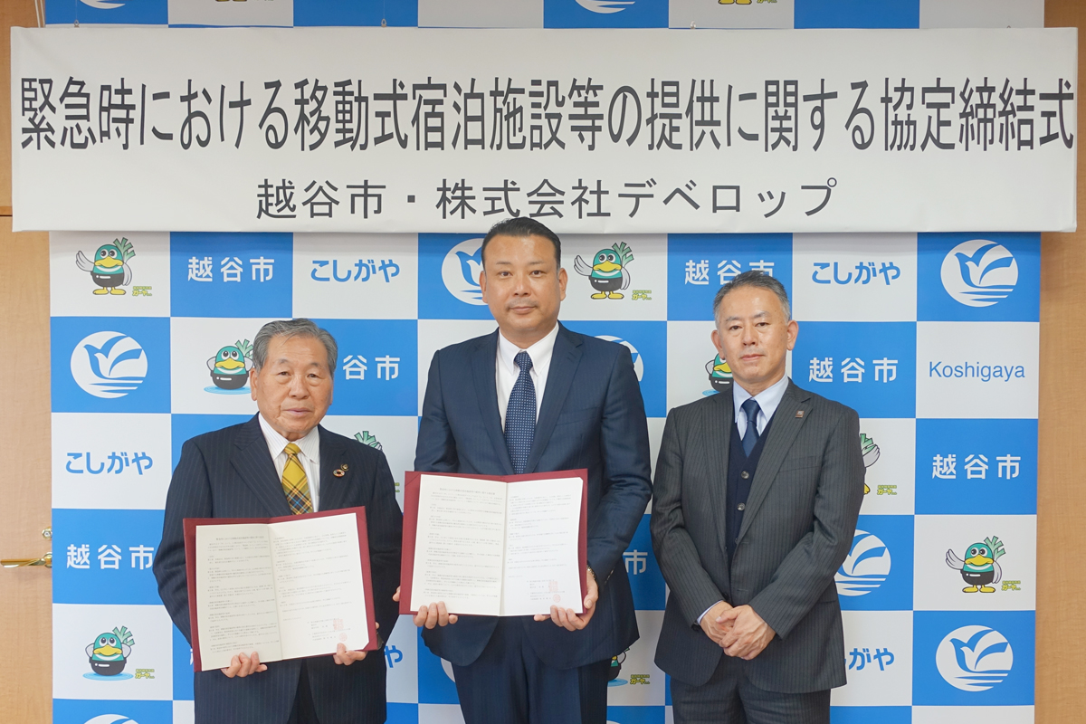 デベロップは、災害発生時における「レスキューホテル」の出動に関し、2020年11月20日に埼玉県越谷市と協定を締結しました。